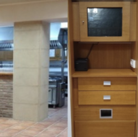 Se ha modificado de lugar el ordenador de tickets que estaba situada en la columna central de la sociedad para mejorar el paso de la Sociedad y se ha colocado un armario con pantalla táctil e impresora en la entrada de la Sociedad, justo en frente de las escaleras de la entrada.