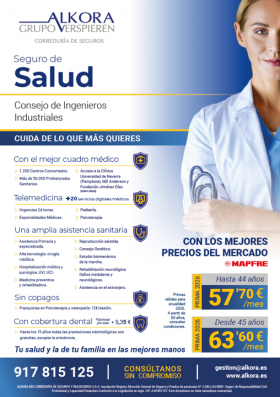 En virtud del Convenio firmado con esta entidad, Alkora-Mapfre ofrece a los miembros del Colegio y familiares (cónyuge e hijos) el seguro de salud más adecuado a sus necesidades y circunstancias.