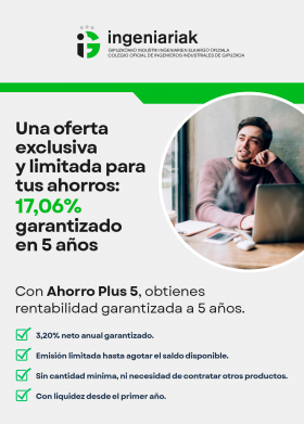 Ponemos a tu disposición un tipo de interés anual garantizado de 3,20% (neto de gastos de gestión) que se fija al inicio de la inversión y se garantiza para un período de duración del producto de cinco años.